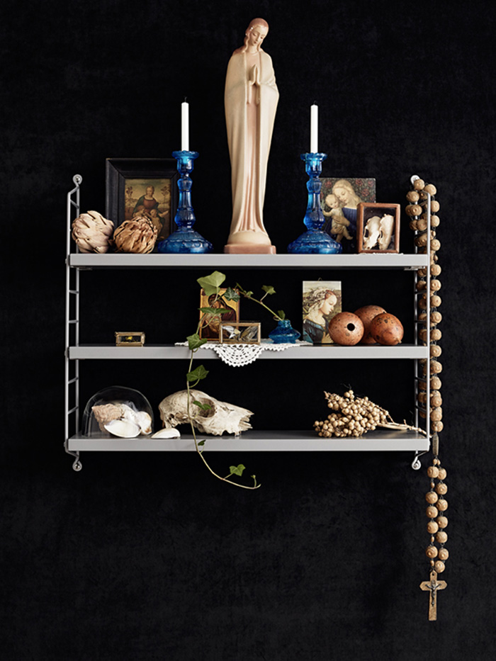 Décoration pour enfant, stylisme culinaire, icône religieuse, sport vintage, couture et même cabinet de Curiosités… Il y aura forcément une ambiance qui vous séduira. Et après ça, comment ne pas être convaincu qu’une étagère String s’adapte à tous types d’intérieurs ? Je me le demande !