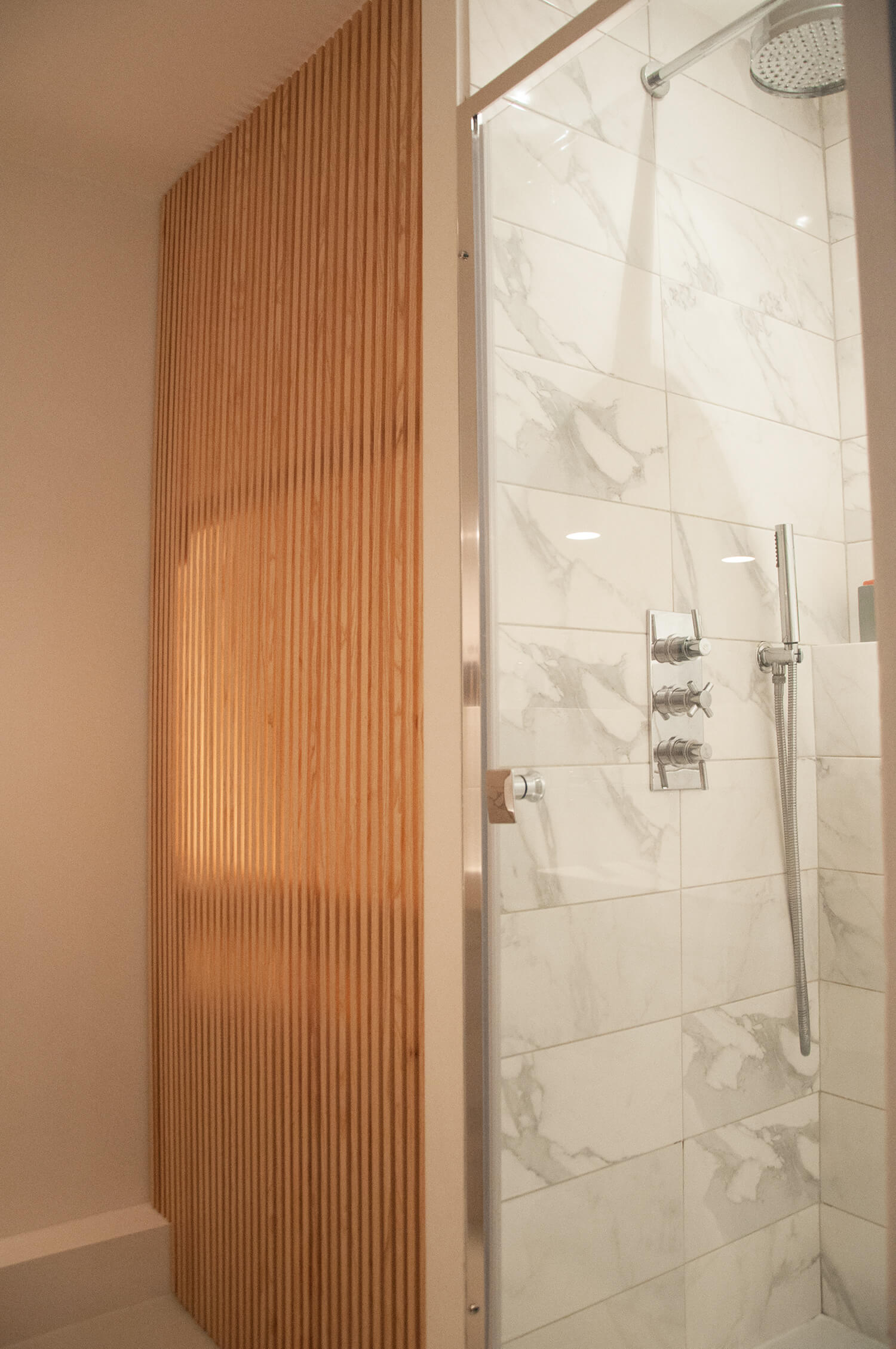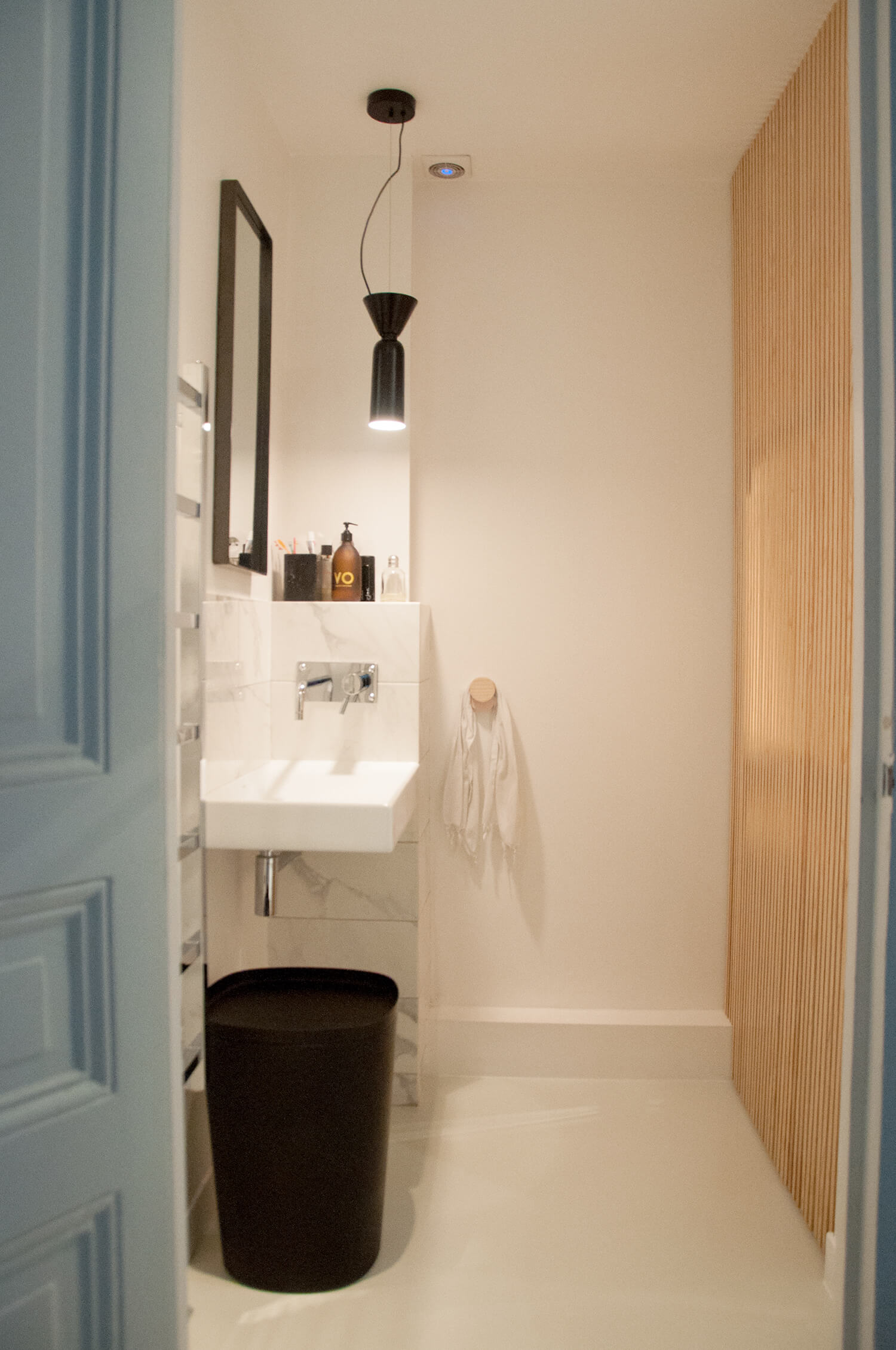 Avec son carrelage effet marbre, elle prend tout de suite des airs luxueux.