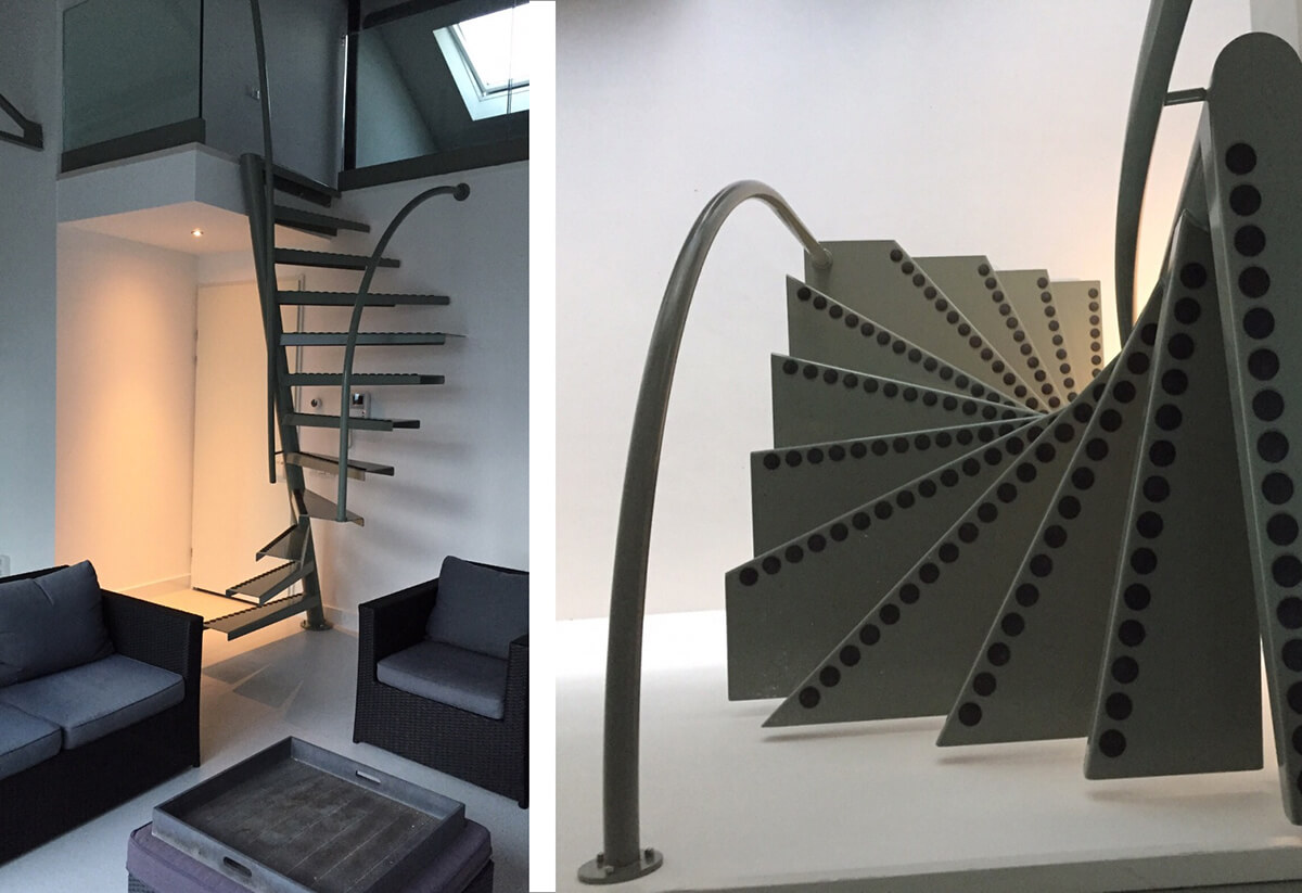 C’est pour répondre à ce genre de demande que le fabriquant EeStairs a imaginé l’escalier 1m2 stairs, un modèle pensé exclusivement pour s’intégrer dans de petits espaces, tout en ayant un certain style. Comme son nom l’indique, il a besoin de seulement 1m2 au sol pour être installé, une belle alternative quand on ne veut pas utiliser quotidiennement un escalier escamotable ou une échelle. Et si vous vous demandez comment c’est possible, regardez simplement les images qui suivent.