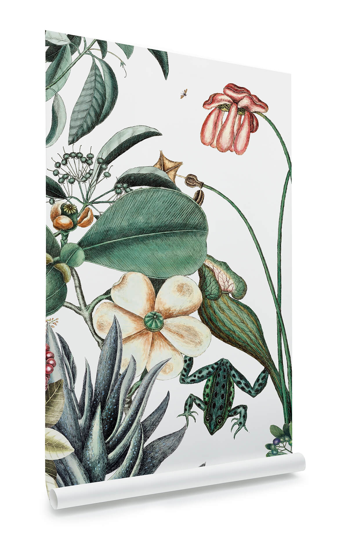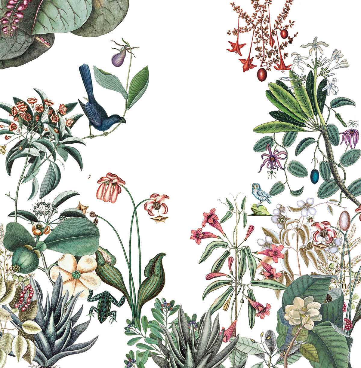 Véritable jardin de plantes démesuré, ce papier peint au décor poétique et un soupçon magique nous inspire un petit paradis terrestre, avec sa végétation luxuriante et ses animaux fantastiques.