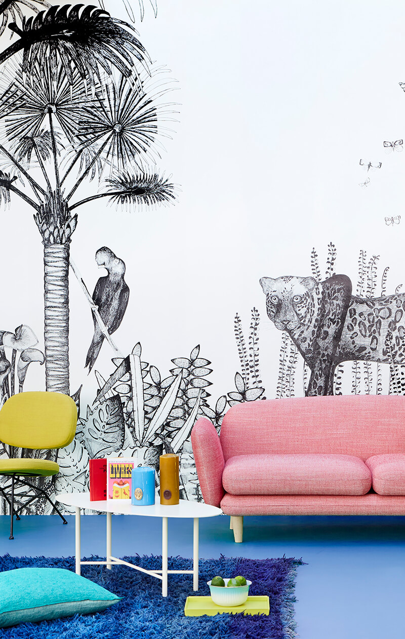 Les livres, l’illustration, la peinture, l’histoire du textile, c’est vraiment ce qui me nourrit le plus. La force et l’énergie des folklores ethniques ne cesse de m’ébahir. Si je devais qualifier l’esprit de Bien Fait, cela serait frais, audacieux, poétique, contemporain, surprenant et jubilatoire. Avec nos collections, nous souhaitons montrer aux gens que le papier peint peut se marier à tous les styles d’intérieurs. Je dirai même qu’une fois qu’on commence à tapisser un mur, cela déclenche souvent une envie plus grande et plus franche !