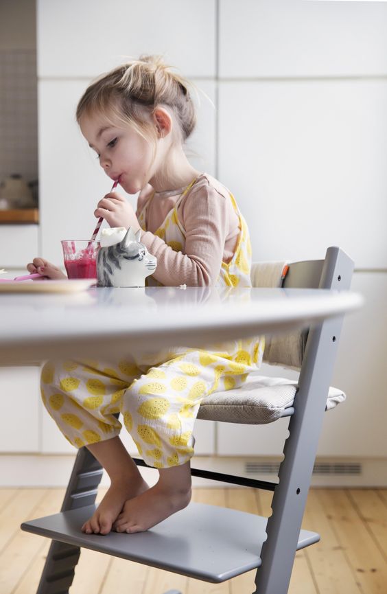 Imaginée en 1972 par le designer norvégien Peter Opsvik, la chaise Tripp Trapp de chez Stokke est le fruit d’une étude qui, pour la première fois dans l’histoire de la chaise haute, place le bien-être des tout-petits au premier plan. De quels appuis disposent-ils pour leurs pieds et jambes, comment manipulent-il la cuillère, où placent-il leurs coudes ?