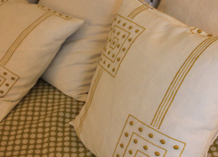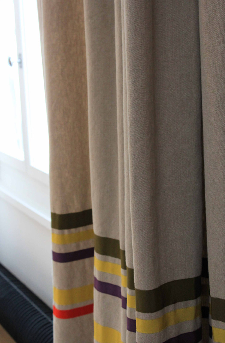 Concernant les rideaux, me croyez-vous si je disais que le motif est réalisé à la machine, mais placé à la main ? C’est tellement régulier, tellement parfait que l’on n’ose y croire ! Et pourtant…