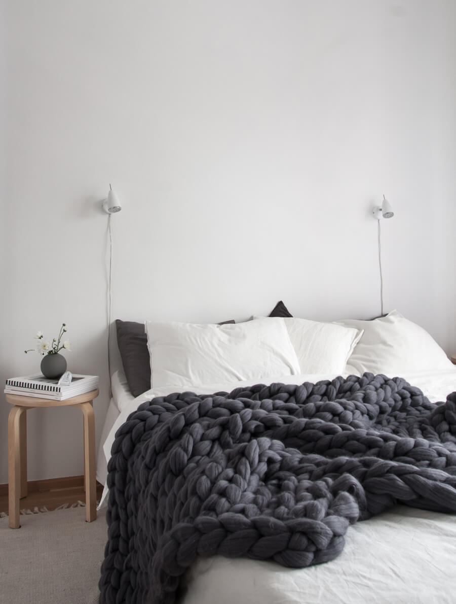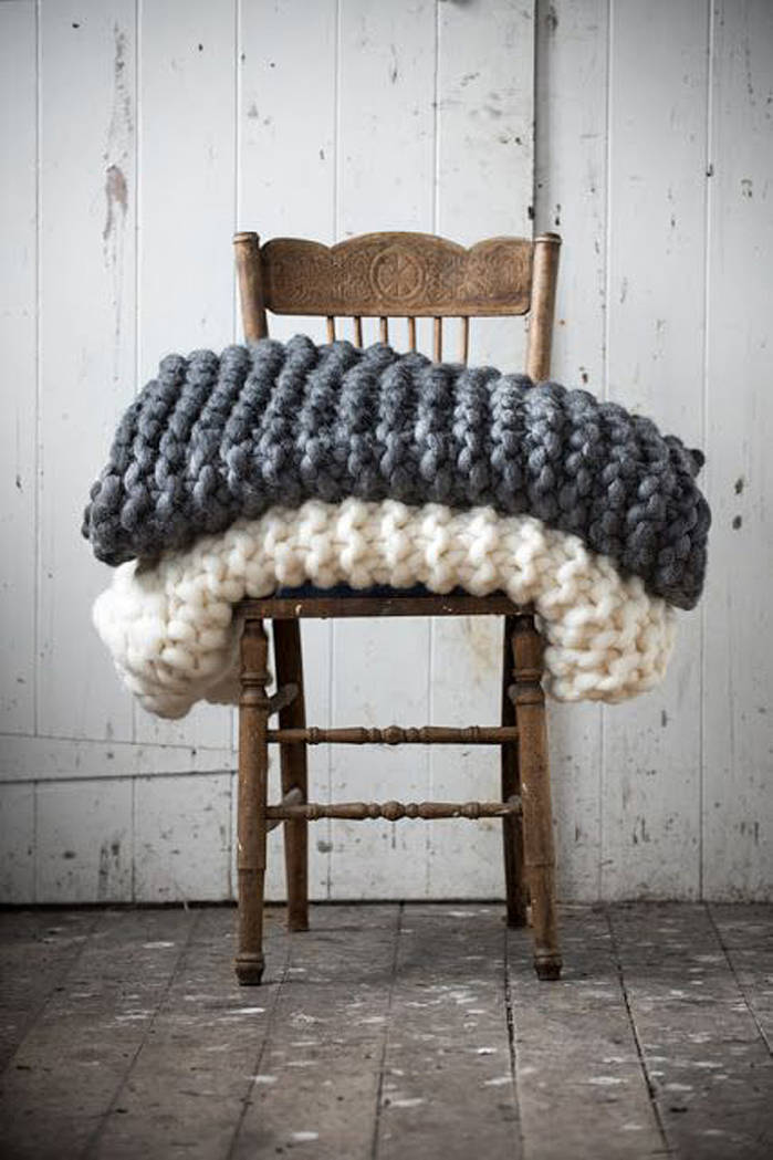 C’est là que le plaid en grosses mailles intervient. Également appelé « Chunky blanket », on l’aime pour son côté ultra doudounet qui donne clairement envie de se lover dedans. Je crois qu’il est temps que je retrouve mes grosses aiguilles en bois, et que je me remette au tricot.