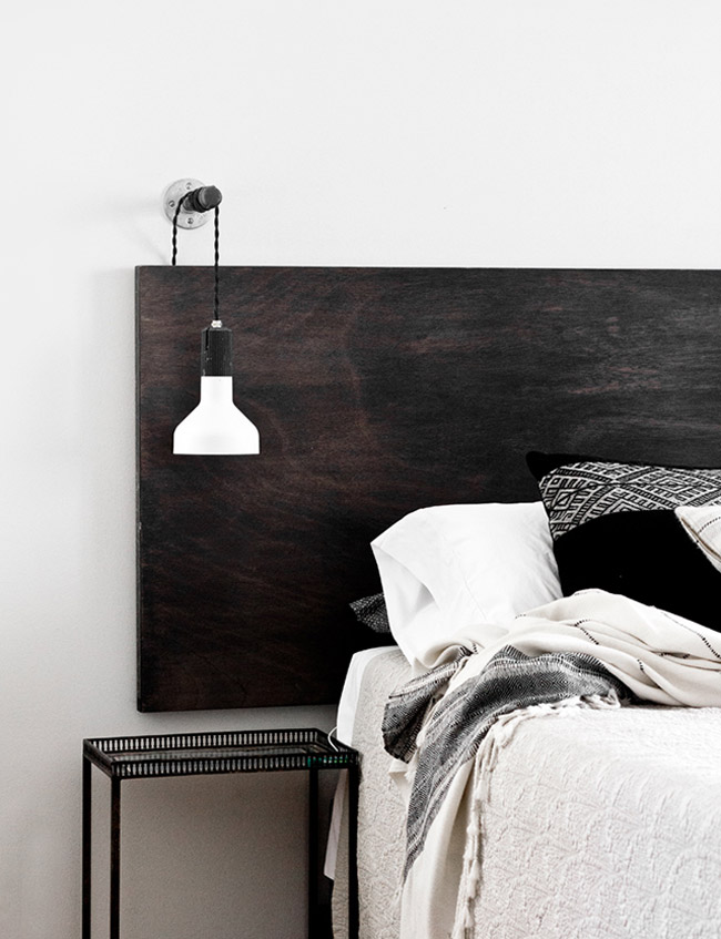 Et pourquoi pas une tête de lit en bois noir ? Cela permet d’adopter cette couleur de manière assez sobre.