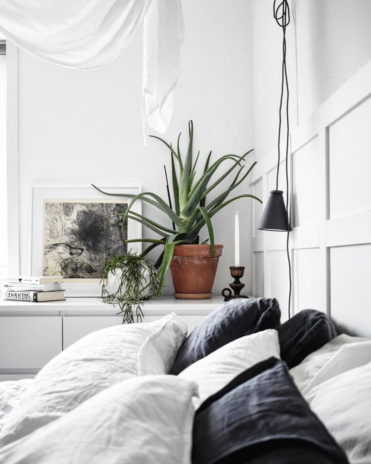 1. J’aime beaucoup la simplicité de la dernière photo. Mais j’hésiterais à avoir une plante aussi imposante – j’ai toujours entendu dire qu’il fallait éviter de mettre des plantes dans une chambre.