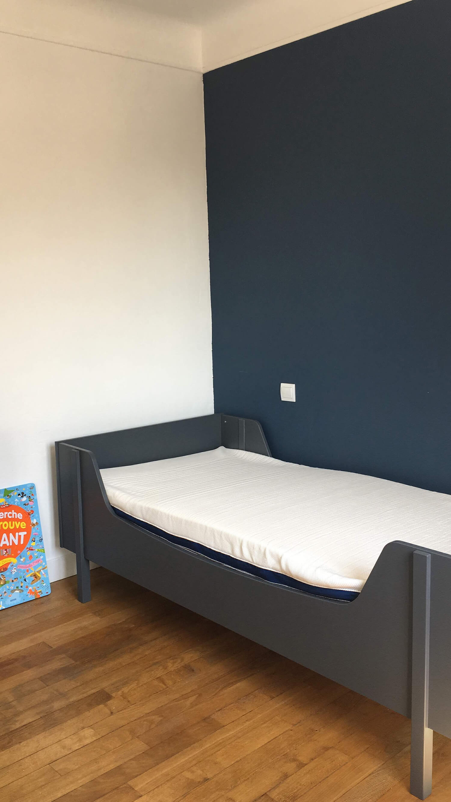 Quand nous avons eu les clés, la première pièce dont nous nous sommes occupés a été la chambre de Robin. Nous avions 15 petits jours pour lui préparer une belle chambre de grand avant ses 3 ans et sa rentrée à l’école. C’était tellement important pour moi !
