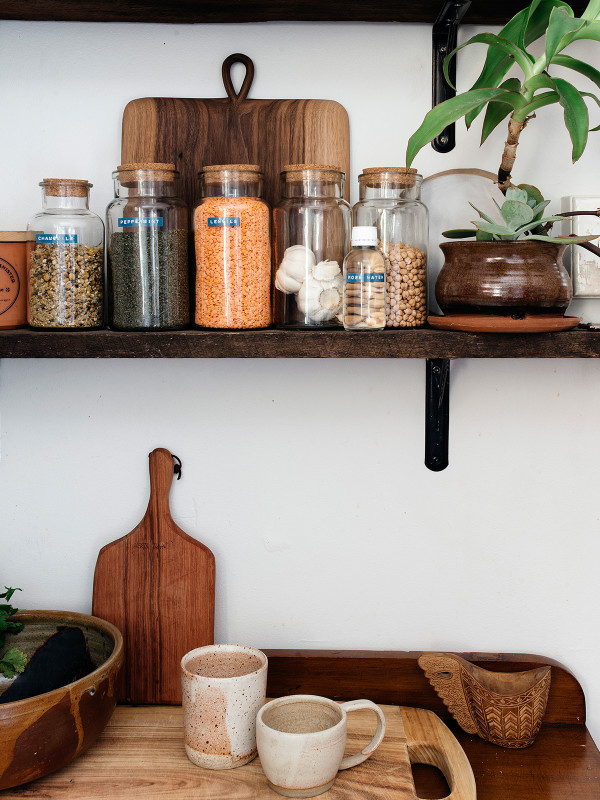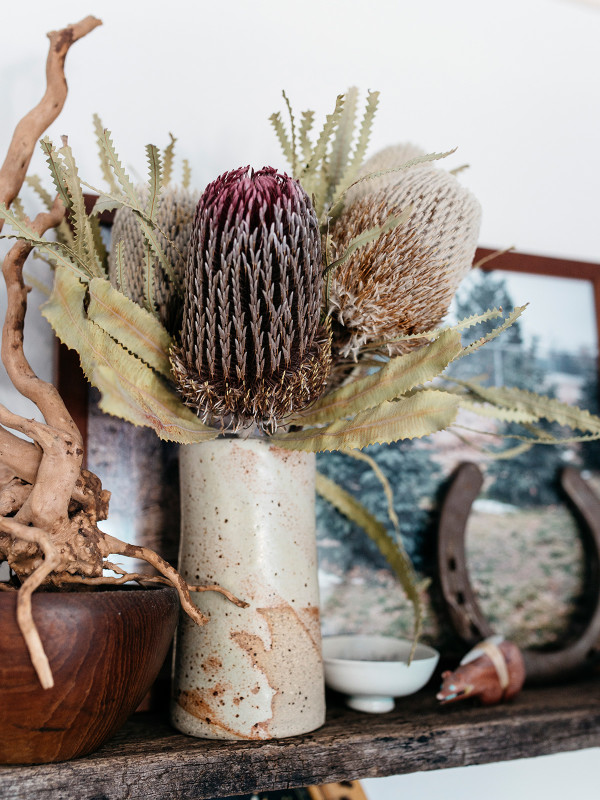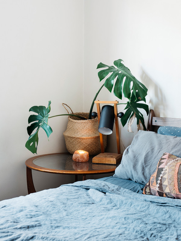 Autre détail déco : les vases sont tous remplis de petits bouquets de fleurs séchées pour une atmosphère très poétique. Sans parler des nombreuses plantes vertes : cactus, monstera et autres plantes retombantes rendent l’appartement encore plus vivant.