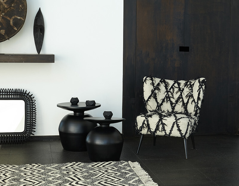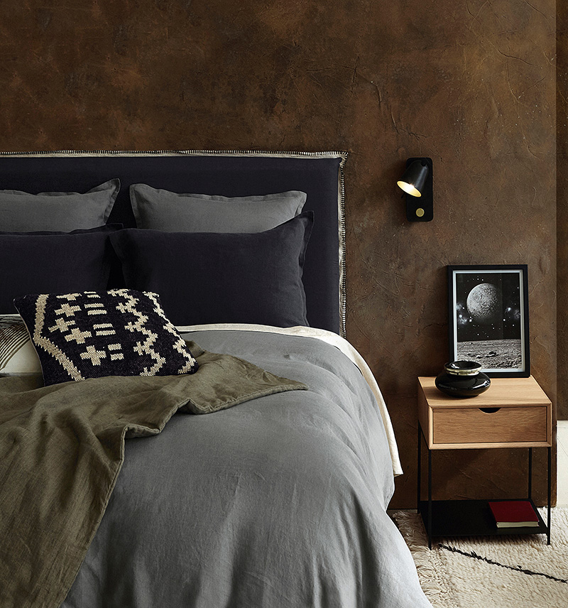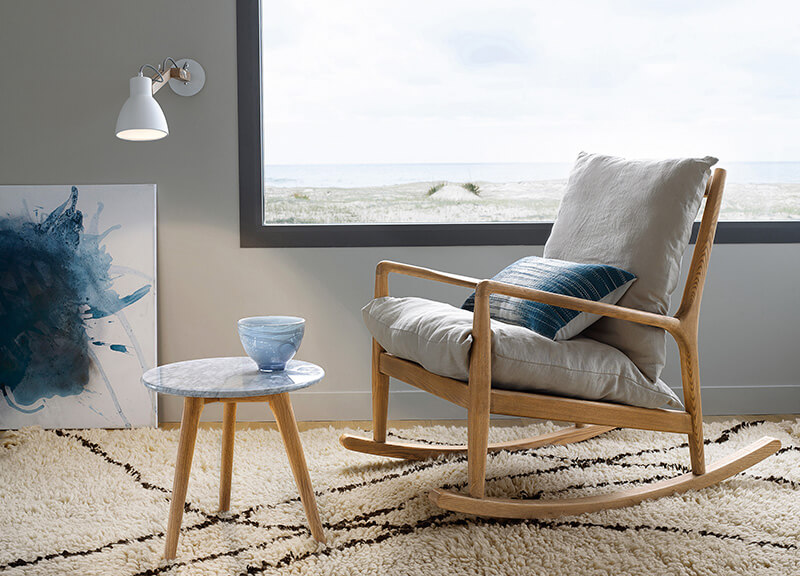 Côté déco, j’aime ces miroirs en rotin revisités. J’imagine bien, pour notre chambre, cette applique murale noir et dorée ainsi que le petit fauteuil et le plaid graphiques.