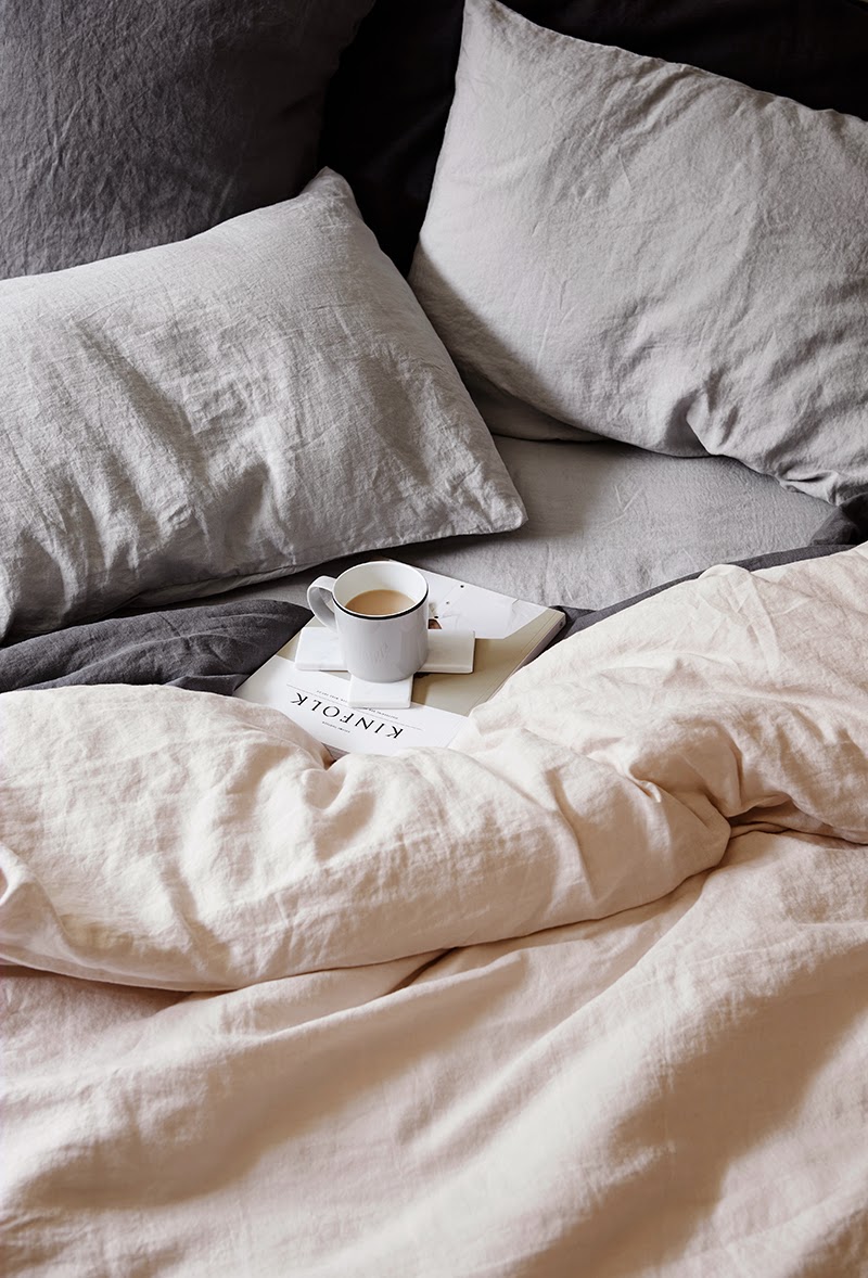 Le plaide en grosse maille semble tellement douillet que ça donne envi de se blottir dedans. Je trouve aussi que les draps en lin ont un chouette pouvoir déco.