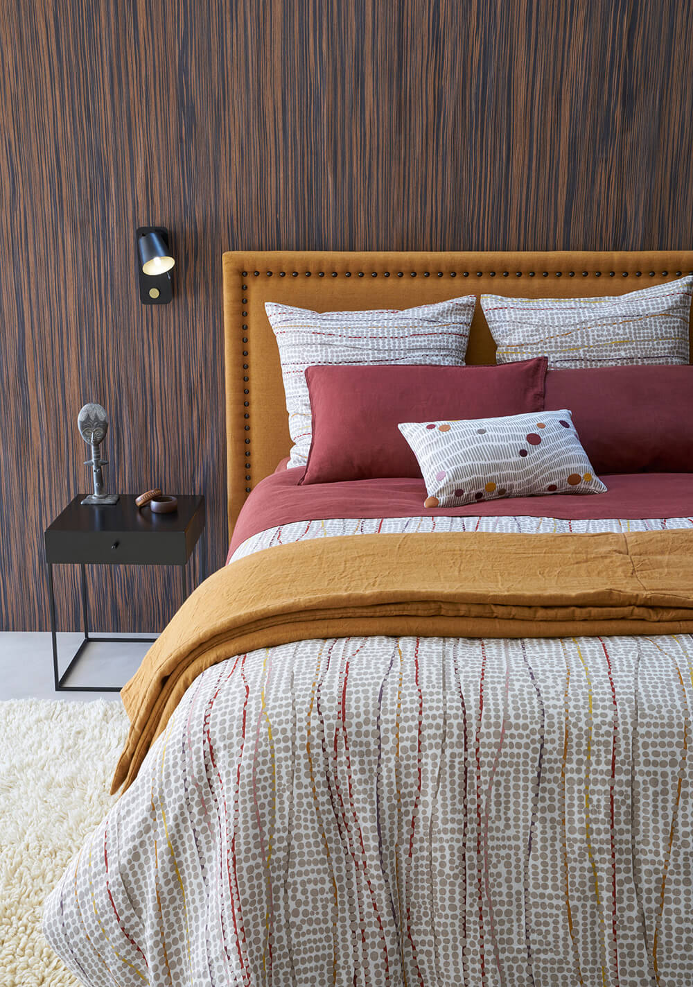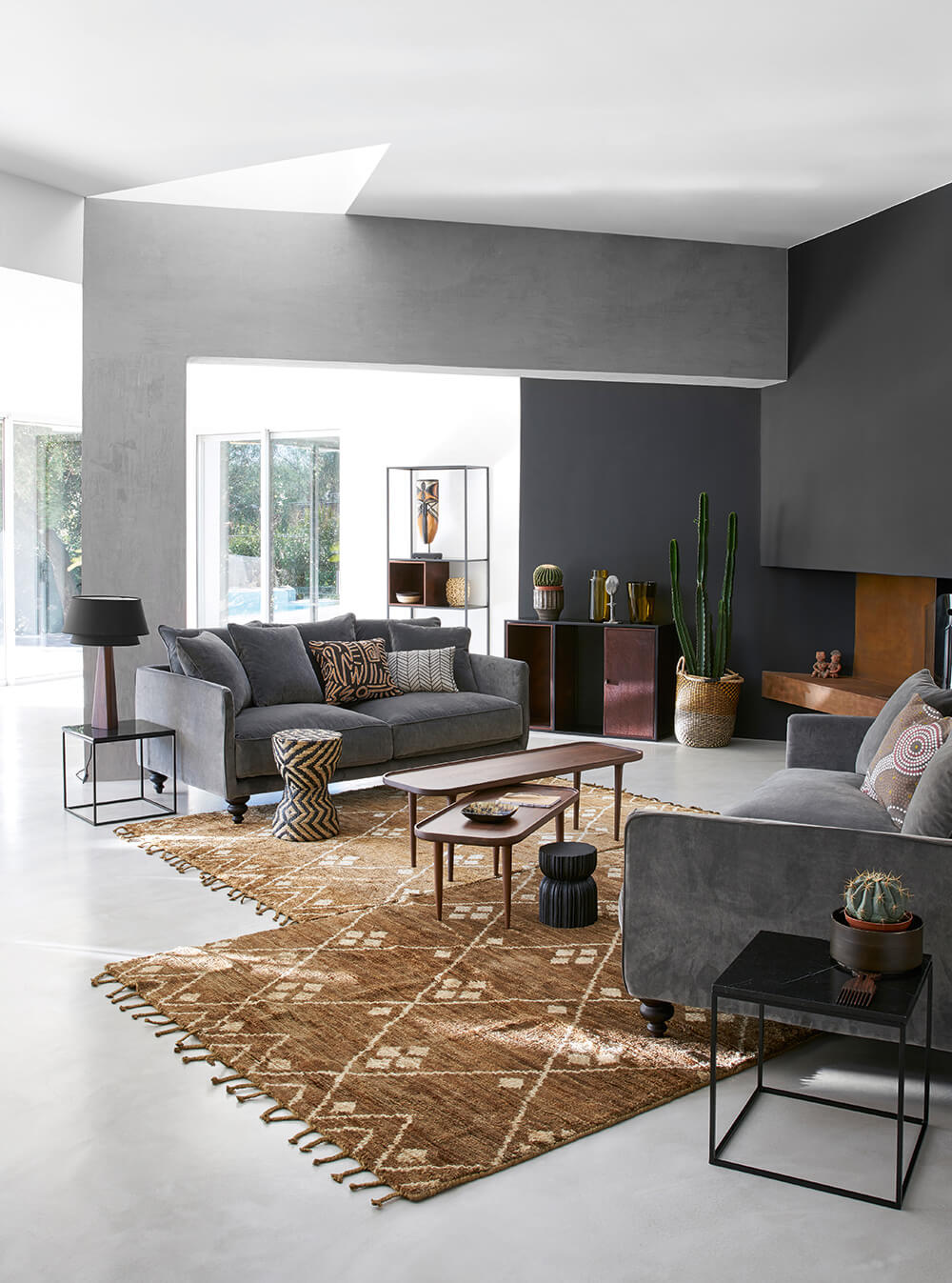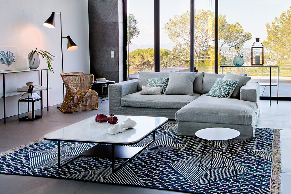 Chez AMPM, les décors se parent d’un style ethnique, de quelques motifs graphiques et de lignes pures. Du côté des couleurs, on note le grand retour des tons marine, kaki, moutarde et brique, qu’on viendra associer à des matières naturelles comme la jute ou le rotin.