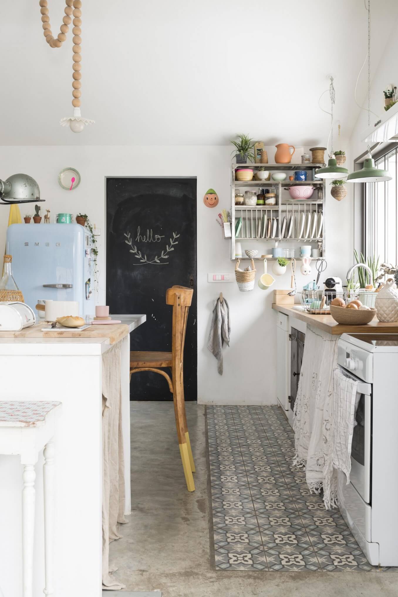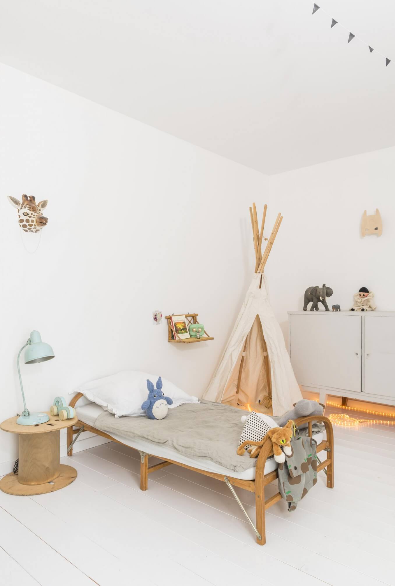 Dans cet écrin aux murs blancs et au sol en béton, on découvre un melting-pot d’objets de récup’, de meubles contemporains, et de pièces design : tout s’accorde parfaitement malgré les différences de style et d’époque. En effet, quand on y regarde de plus près, on aperçois des éléments des années 50’s, des luminaires industriels, mais aussi des carreaux de ciment, des chaises de bistrot et du mobilier scandinave. Le résultat : un intérieur plein de vie et de personnalité comme on les aime !
