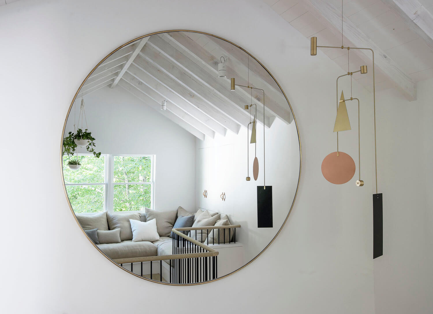 On aime : les luminaires, tous plus élégants les uns que les autres ; les détails en laiton doré ; les poutres apparentes peintes en blanc ; le mur en briques blanches dans la cuisine ; le lambris mural dans le séjour et la chambre des enfants.
