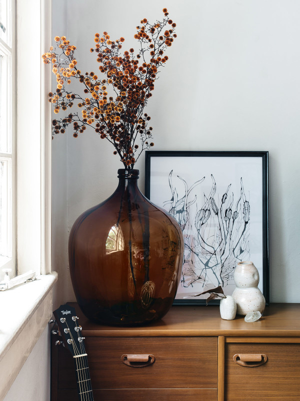 J’adore les gros vases avec juste des petites fleurs blanches dedans le contraste est jolie !