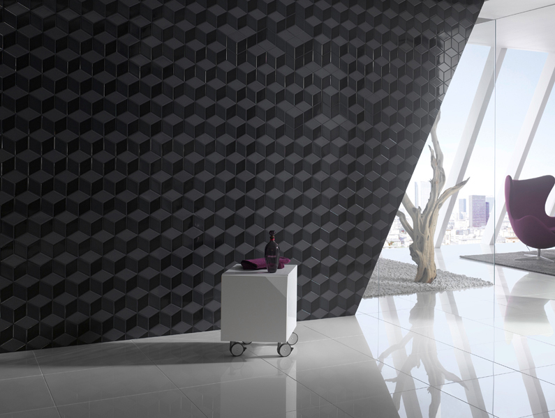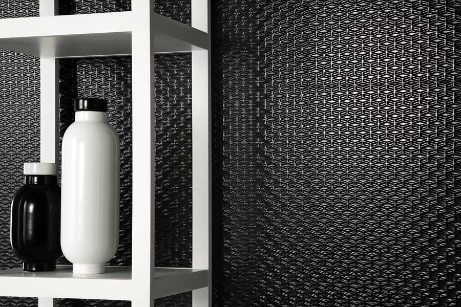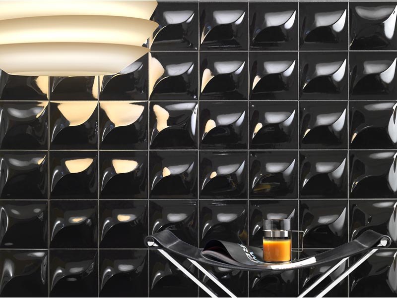 Au mur, les rendus sont encore très différents. Lea Ceramiche propose des motifs en relief et une finition brillante qui apporte de la luminosité à la pièce de part les reflets des lumières naturelle et artificielle.