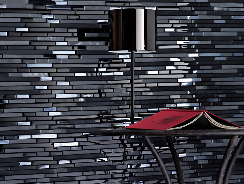 Pour ceux qui préfèrent les finitions mates, Inalco propose ce joli modèle discret et élégant. Des rectangles plus ou moins texturés qui se chevauchent de manière irrégulière. Personnellement, j’adore !