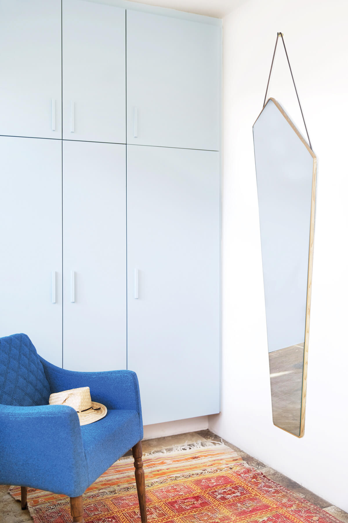 On l’aime pour ses lignes graphiques et épurées, pour sa forme originale mais aussi pour le mélange de chêne et de cuir, qui font de lui, un objet intemporel. Il ne fait pas qu’agrandir l’espace visuellement, il habille carrément les murs de par son style affirmé.