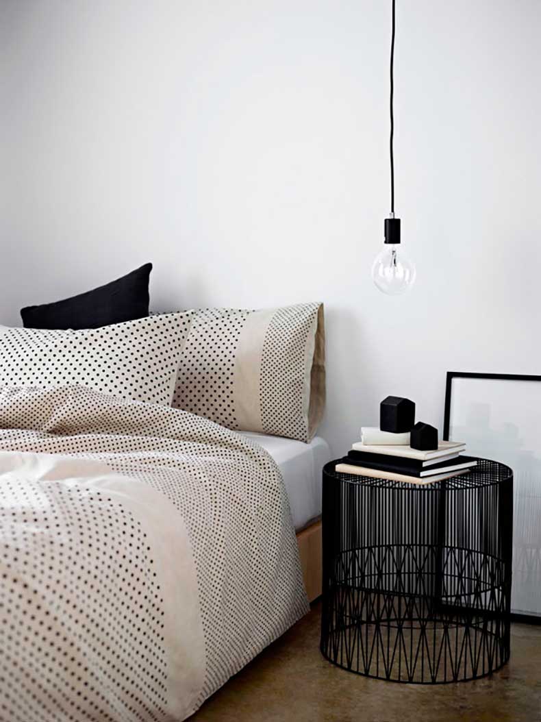 Very graphic, the wire nightstand is perfect in a modern interior. In a black finish like here, it brings contrast and a lot of style.