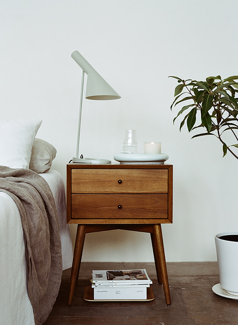 A Scandinavian nightstand, perfect for a soft and relaxing atmosphere.