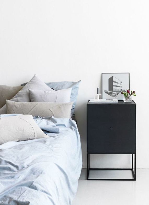 The nightstand helps to energize and structure the space. In my opinion, it is an essential element for both storage and decoration.