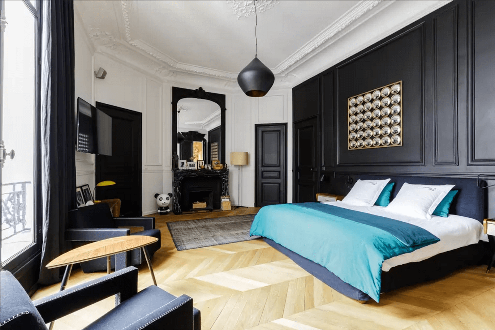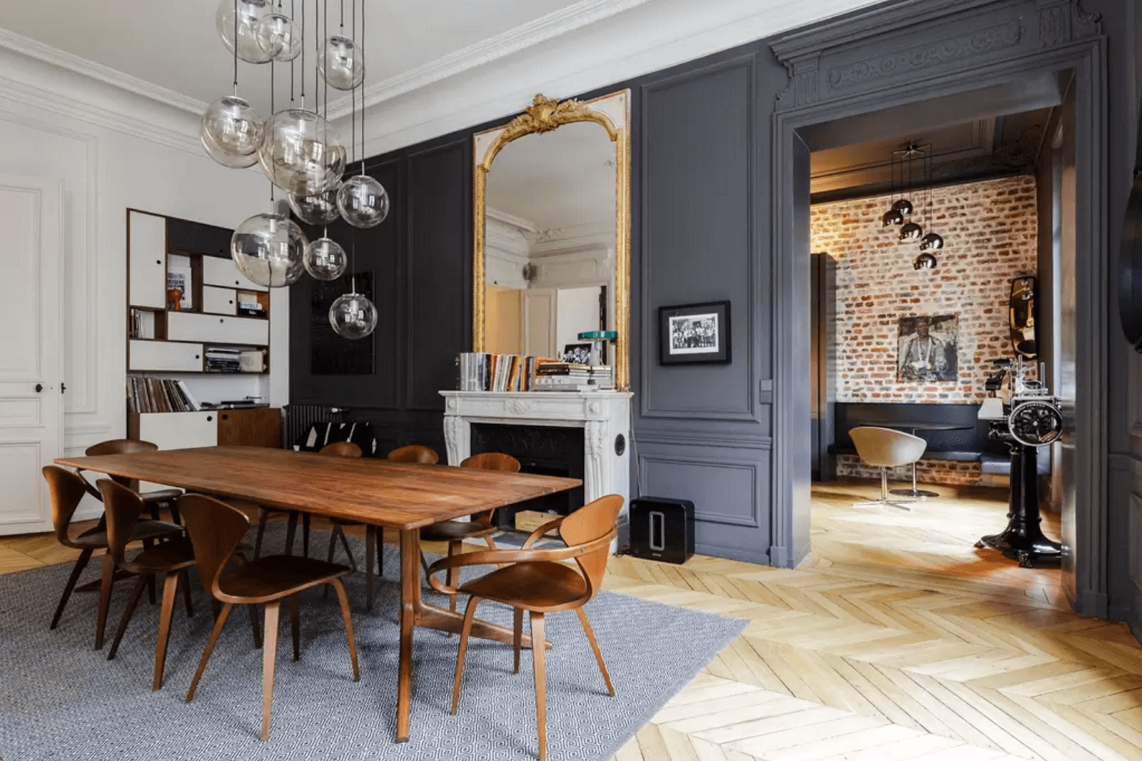 Les hauts murs blancs typiques des appartements Haussmanniens en font rêver plus d’un. Mais parfois, l’envie de couleur est plus forte. Il suffit alors d’un bon coup de peinture pour apporter encore plus de cachet et d’authenticité à un lieu. Même si elles peuvent paraître effrayantes pour certains, les couleurs sombres comme le bleu nuit, le gris anthracite ou le noir sont justement parfaites pour cela.