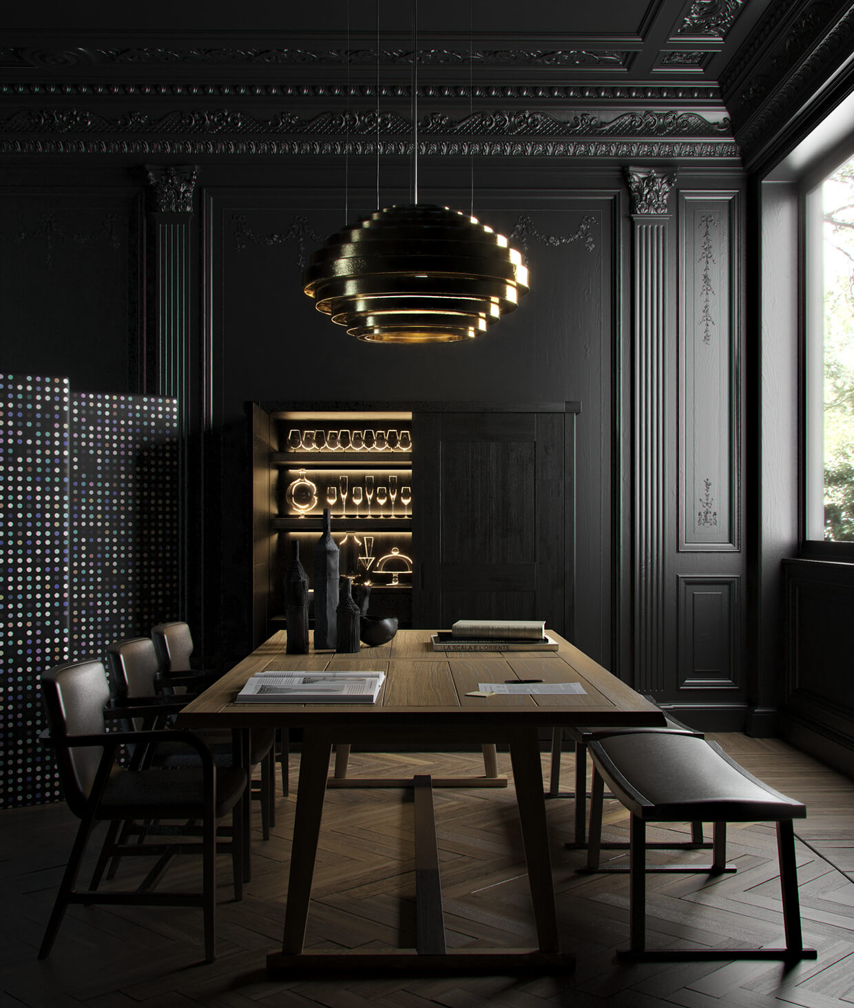 The Black Image with gold pendant chandelier is covered by my copyright.