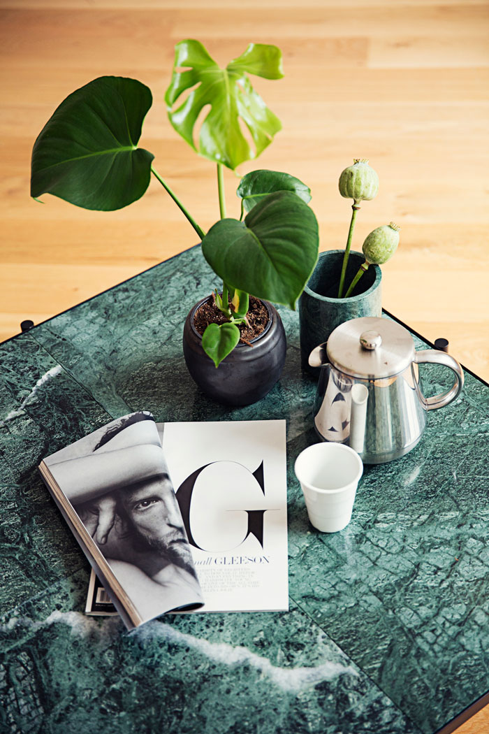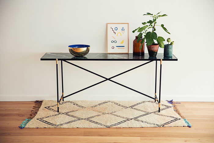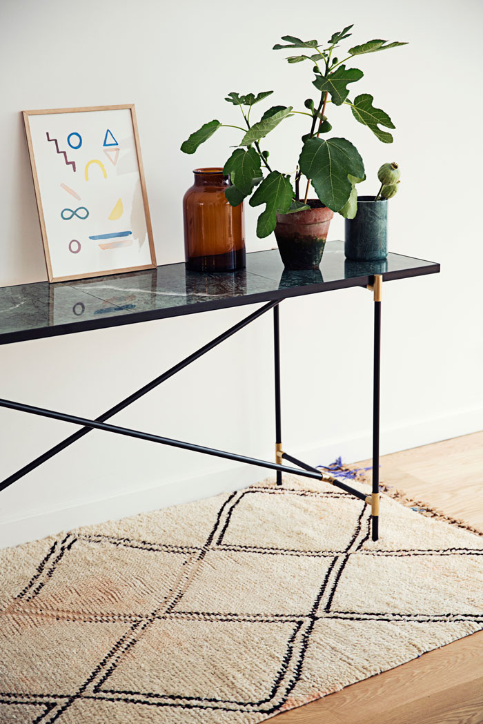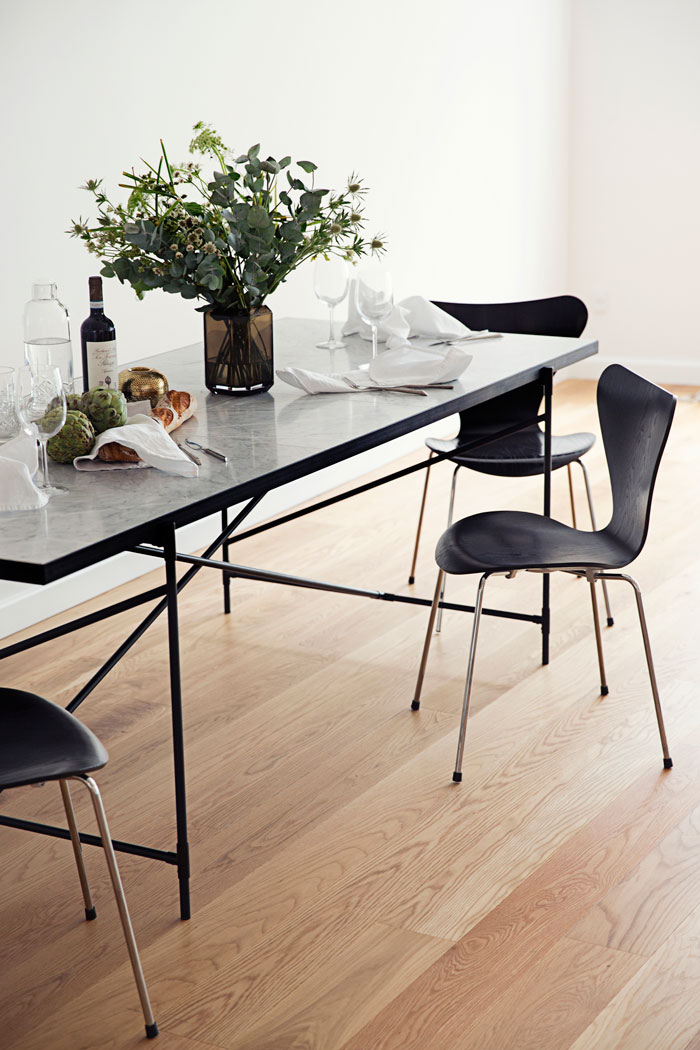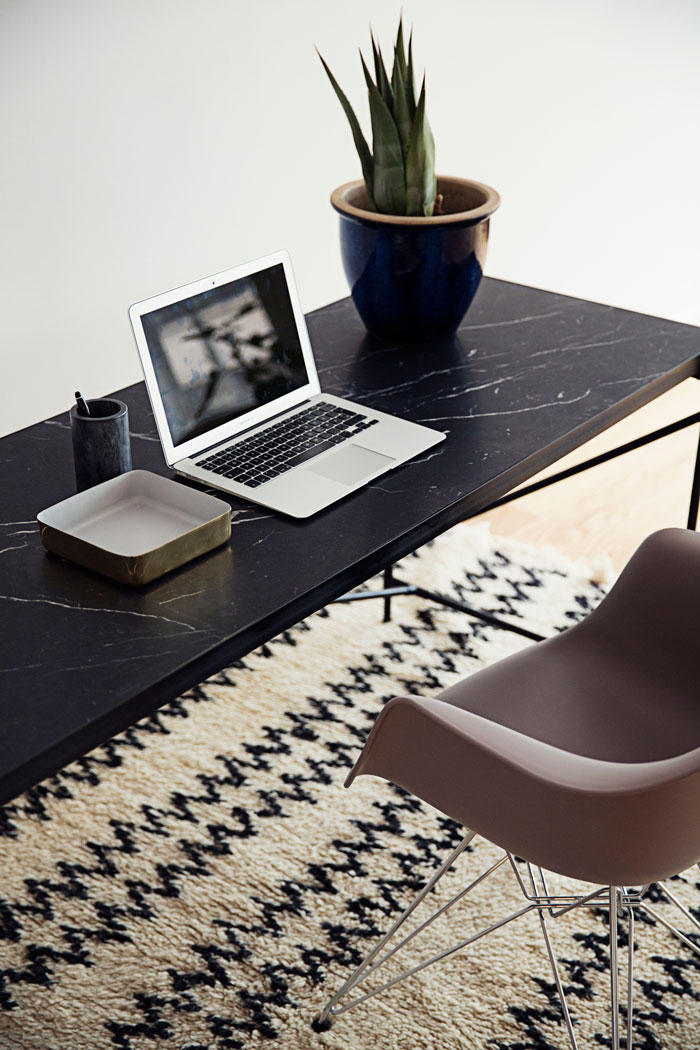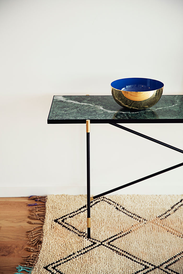 Les pieds tubulaires donnent un côté très moderne aux meubles ; et l’association des matières est intemporelle et canon.