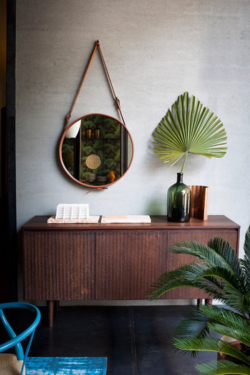 Que cela soit dans une entrée ou dans une pièce de vie, le miroir rond est idéal au dessus d’une console. Cela permet de créer un petit coin déco réussi tout en apportant une touche de modernité.