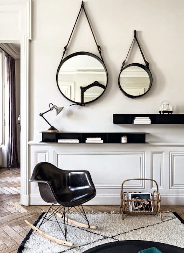 En vérité, les miroirs ronds ne sont pas nouveaux. C’est dans les années 50′ que le célèbre architecte et décorateur Jacques Adnet a imaginé un miroir cerclé de cuir. Une pièce qui est très vite devenue une icône du design contemporain et que tous les amoureux de déco s’arrachent.