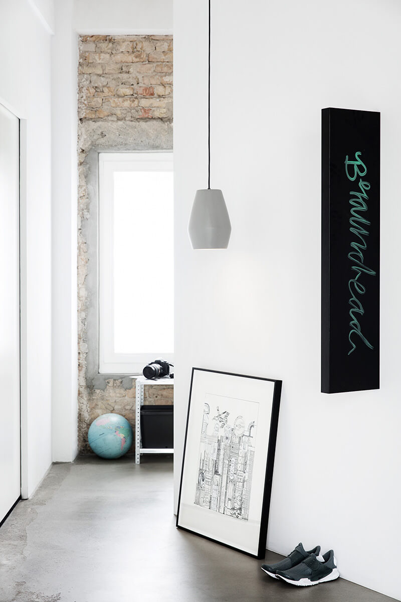 Northern Lighting, automne 2016 Cuisine avec mur en briques blanches Luminaire scandinave