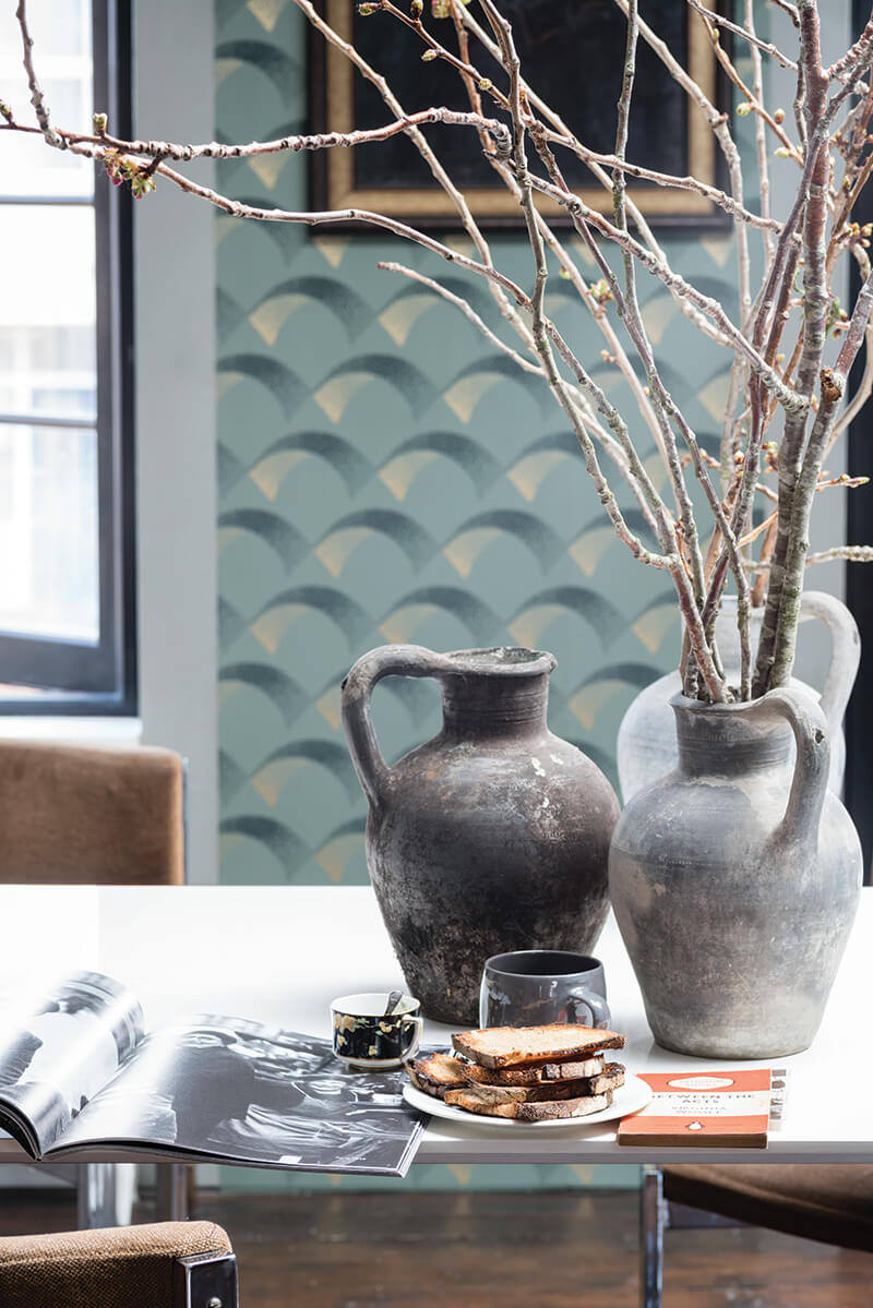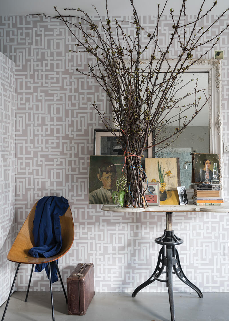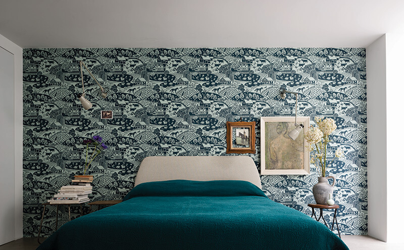 Indéniablement mon gros coup de coeur. Inspiré d’une scène champêtre, ce papier peint est à la fois graphique et amusant, grâce à tous ses petits détails qui stimulent l’imaginaire. Je me vois très bien assise devant, à le contempler et à m’inventer des histoires.