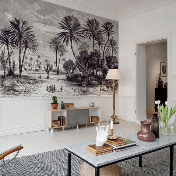 Cette gravure de Charles Barbant éditée par Au fil des couleurs se décline désormais façon fresque murale. Ce décor fascinant nous transporte dans un univers oriental plein de poésie.