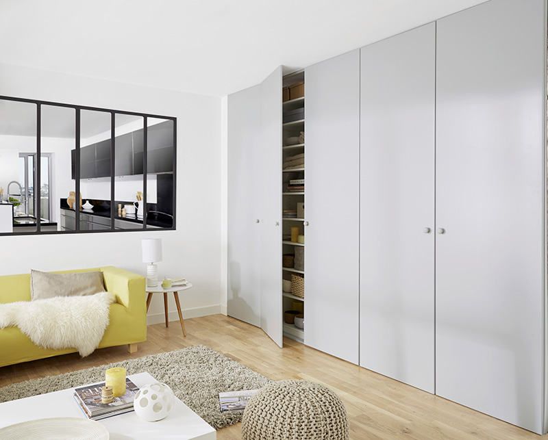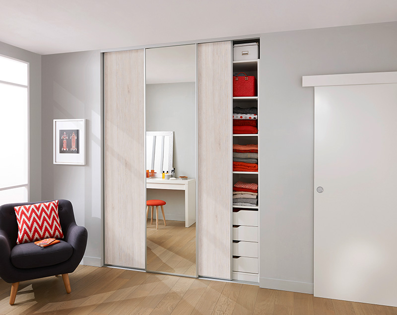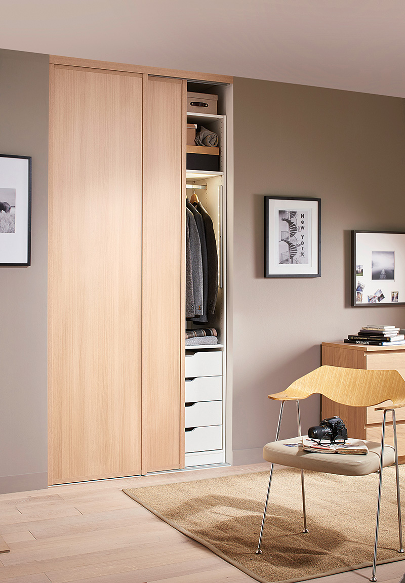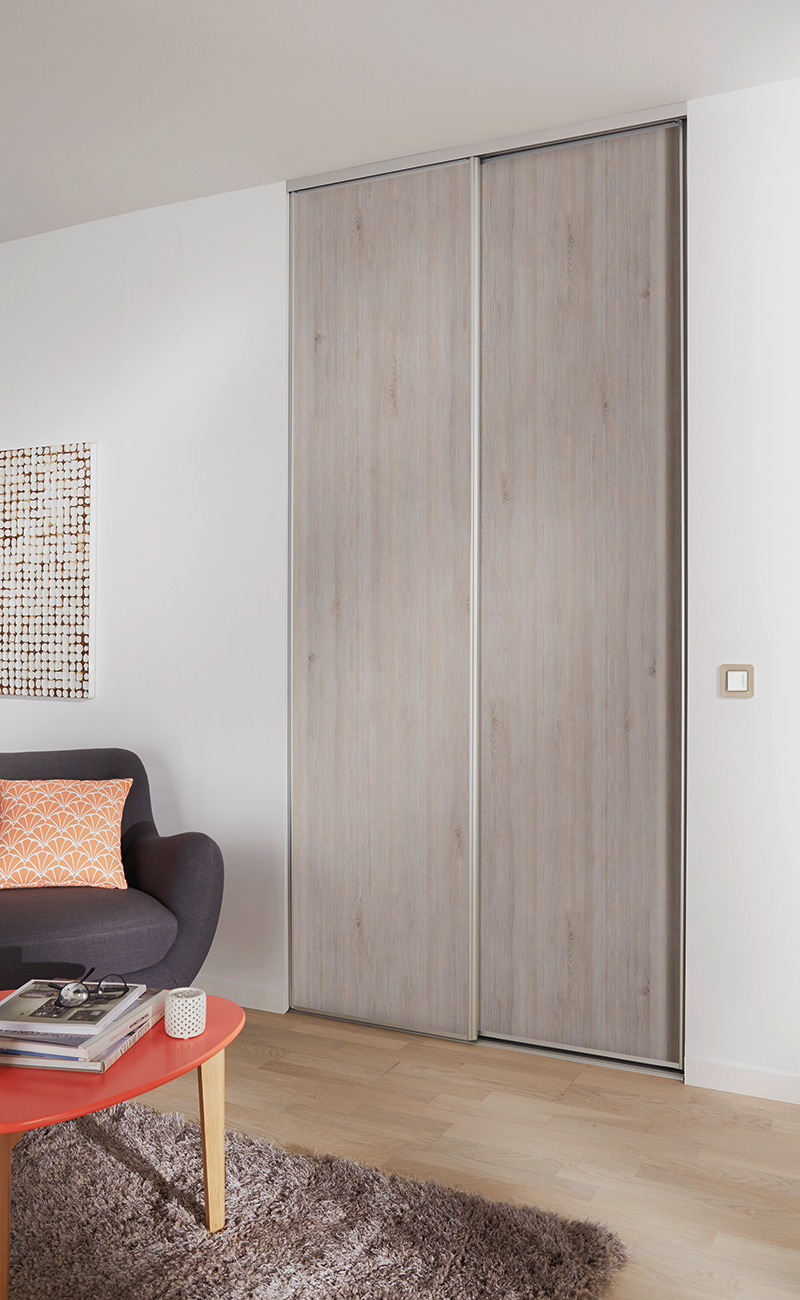 Mais puisqu’on parle du vrai gain de place, autant miser carrément sur des portes coulissantes. On oublie les portes blanches traditionnelles, et on fonce sur des revêtements décoratifs comme une imitation bois, une couleur ou même un mix des deux.