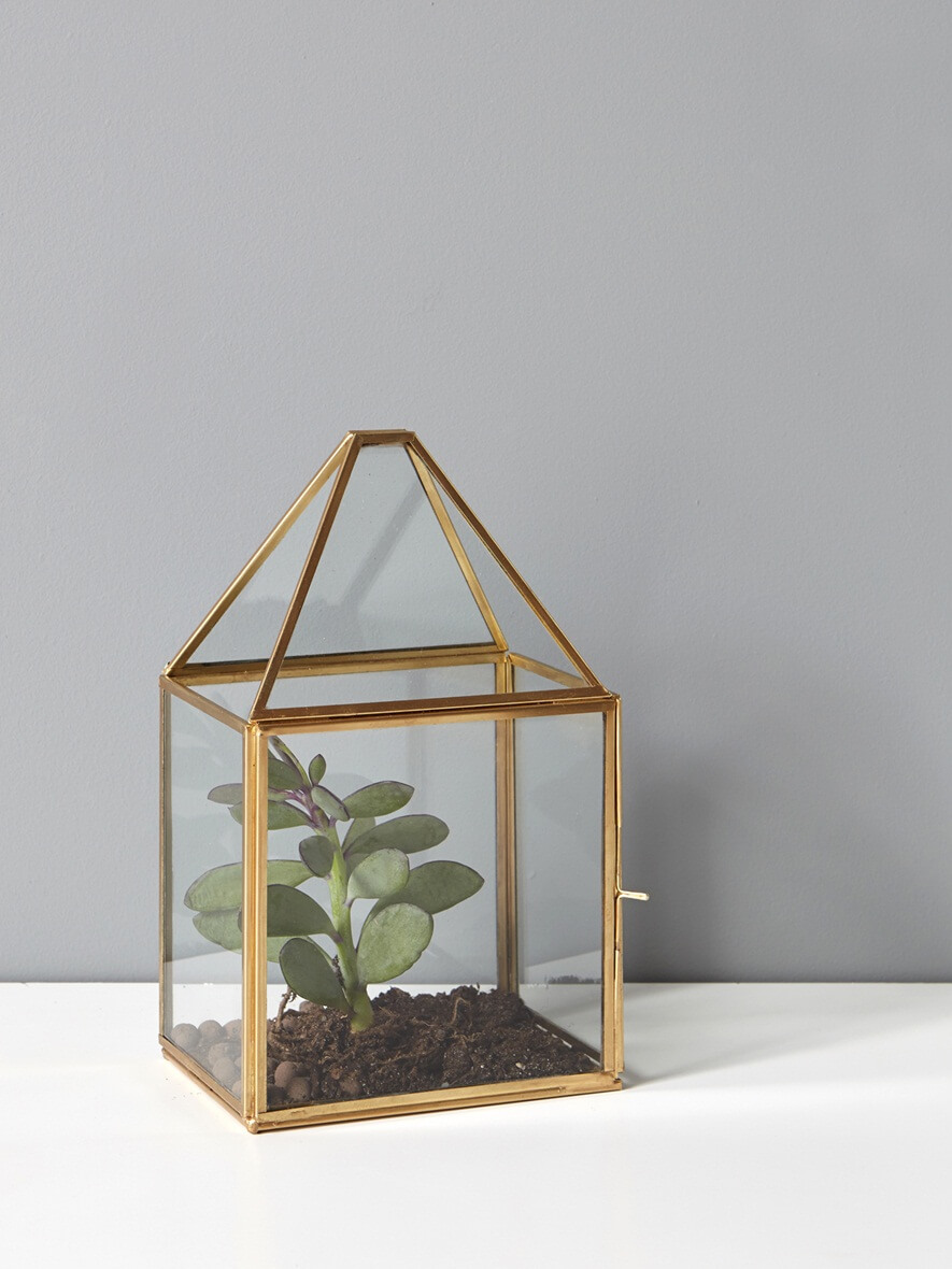 On commence avec ce petit terrarium trop mignon. J’adore ce genre d’objet car on peut y glisser tout ce qu’on veut. Une plante verte, mais aussi des souvenirs de voyage ou des objets de famille.