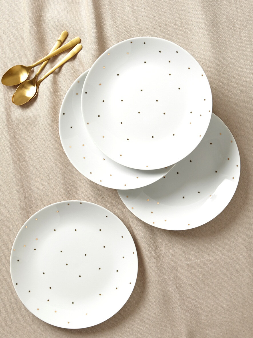 Enfin pour égayer nos repas, je craque pour ces petites assiettes blanches à pois dorés. Vous aimez ?