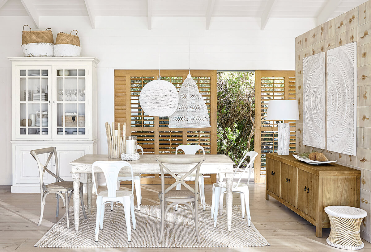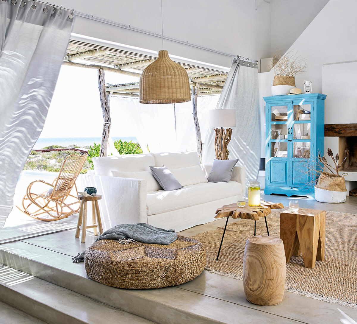 Dans ces intérieurs où le blanc et les matières naturelles règnent en force, on se sent glisser tout doucement vers un état d’esprit plus sain. Banquette douillette, accumulation de coussins, bois flotté, coquillages et poissons à profusion, voici quelques idées shopping pour explorer ce style et l’adopter avec sérénité.