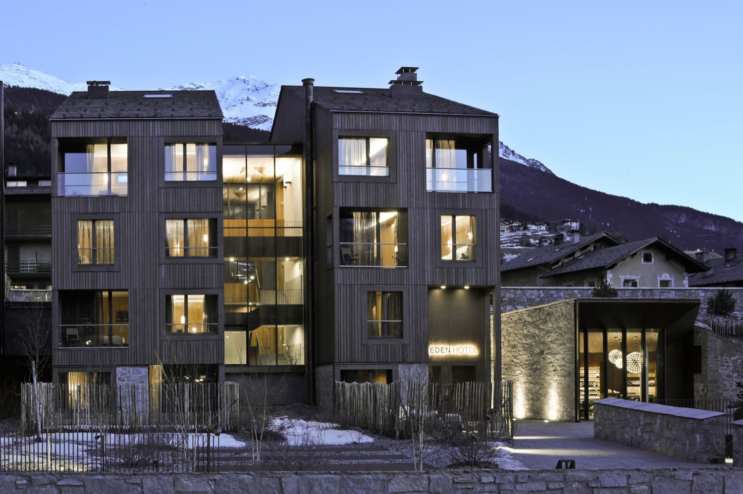 Bormio est une station de ski connue pour être le lieu où se déroulent les manches de la coupe du monde de ski. Et c’est non loin des pistes que ce situe l’hôtel que nous visitons aujourd’hui : l’Eden Hotel. Décoré avec des matériaux nobles et des tons doux, ce lieu est empreint de chaleur.