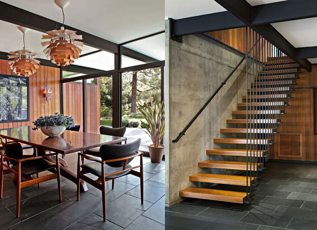 Cette splendide demeure réalisée par l’agence Osborn est fortement inspirée des habitations des années 50’s. Presque totalement ouverte sur les paysages Californiens, elle offre un cadre de vie idyllique et sa décoration et ses volumes nous font voyager dans le temps. Le style mid-century, l’alliance de bois, de pierre naturelle, de verre, de béton et de métaux m’ont laissé sous le charme.