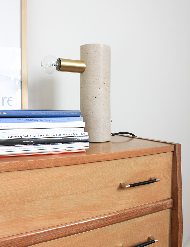 Commode chinée et lampe dessinée par le studio Dessuant Bone et éditée par Another Country.